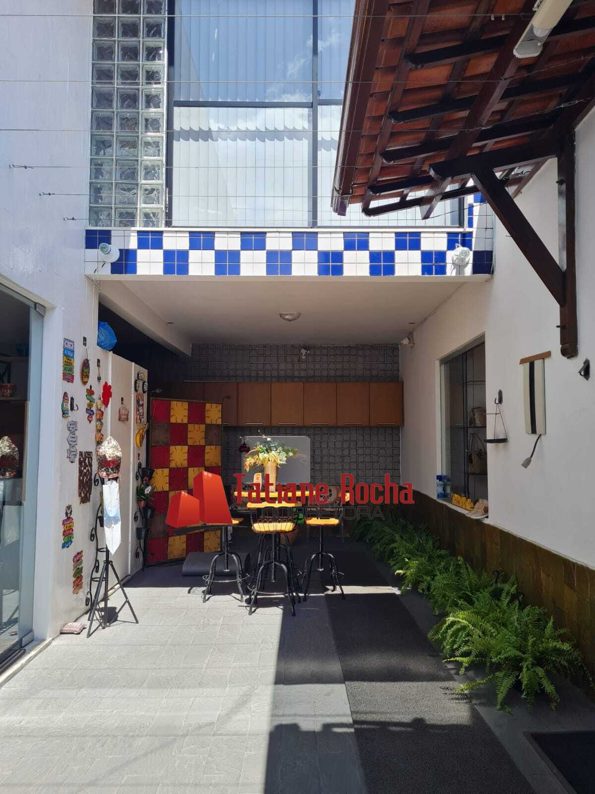 Constituído por; 3/4, duas salas, tres banheiros,copa, cozinha, mezanino,hall, corredor lateral, garagem e area de serviço.